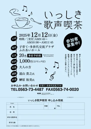公開日:2025年10月07日イベント・講座いっしき歌声喫茶