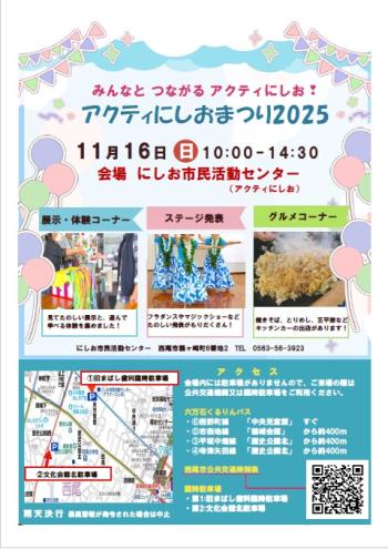 その他公開日:2025年11月08日アクティまつり2025~みんなと つながる アクティにしお❣~開催日:2025年11月16日(日)