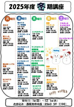 公開日:2025年11月09日イベント・講座西尾勤労会館 冬期講座開催日:外部リンクまたは添付ファイルの講座プログラムをご参照ください