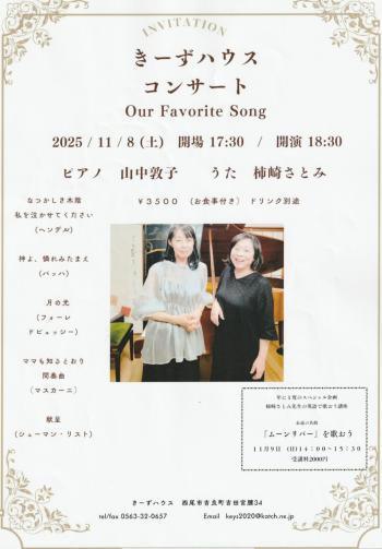 公開日:2025年10月07日イベント・講座きーずハウスコンサート Our Favorite Song
