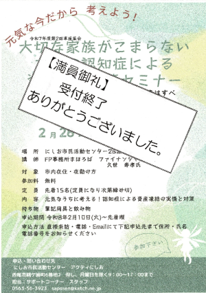 【満員御礼】ありがとうございました。申込み受付け終了 令和7年度第2回車座集会 大切な家族がこまらないための認知症による資産凍結対策セミナー