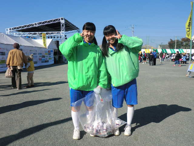 ![]() 会場に入って、一番に目に入ったのが、ボランティアの吉良中学校の生徒さん。にこやかに楽しくゴミ集めをしてくれていました。 |