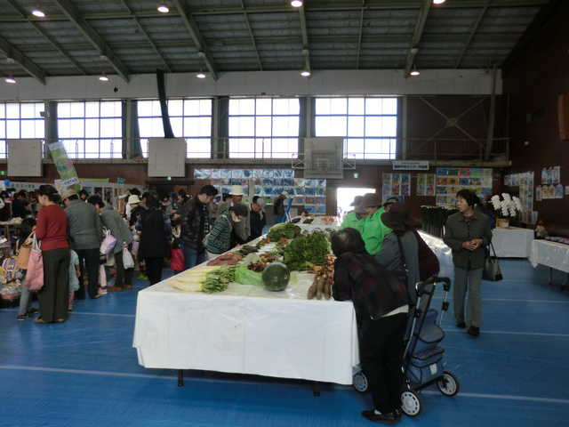 ![]() 体育館のなかでは、フリーマーケット・農畜水産加工物品評会・茶席が行われていました。 |