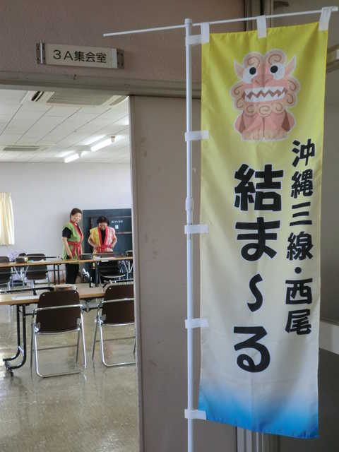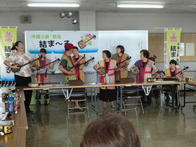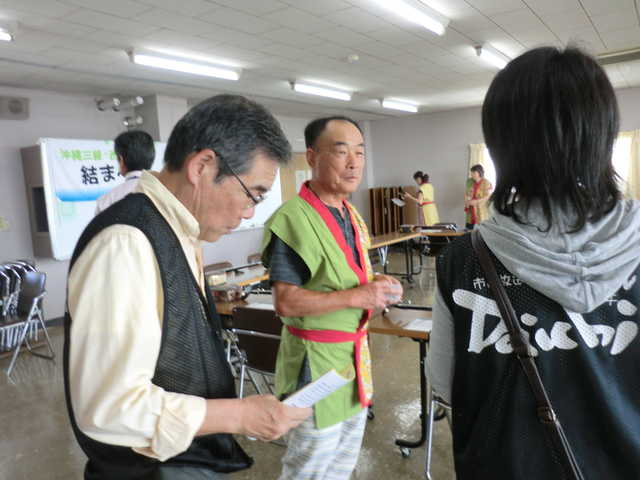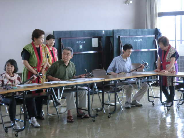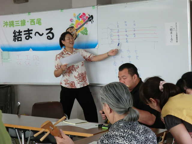 ![]() 結ま~るの会員さんも、沖縄の雰囲気を出すため民族衣装を着て教えてくださいました。 |