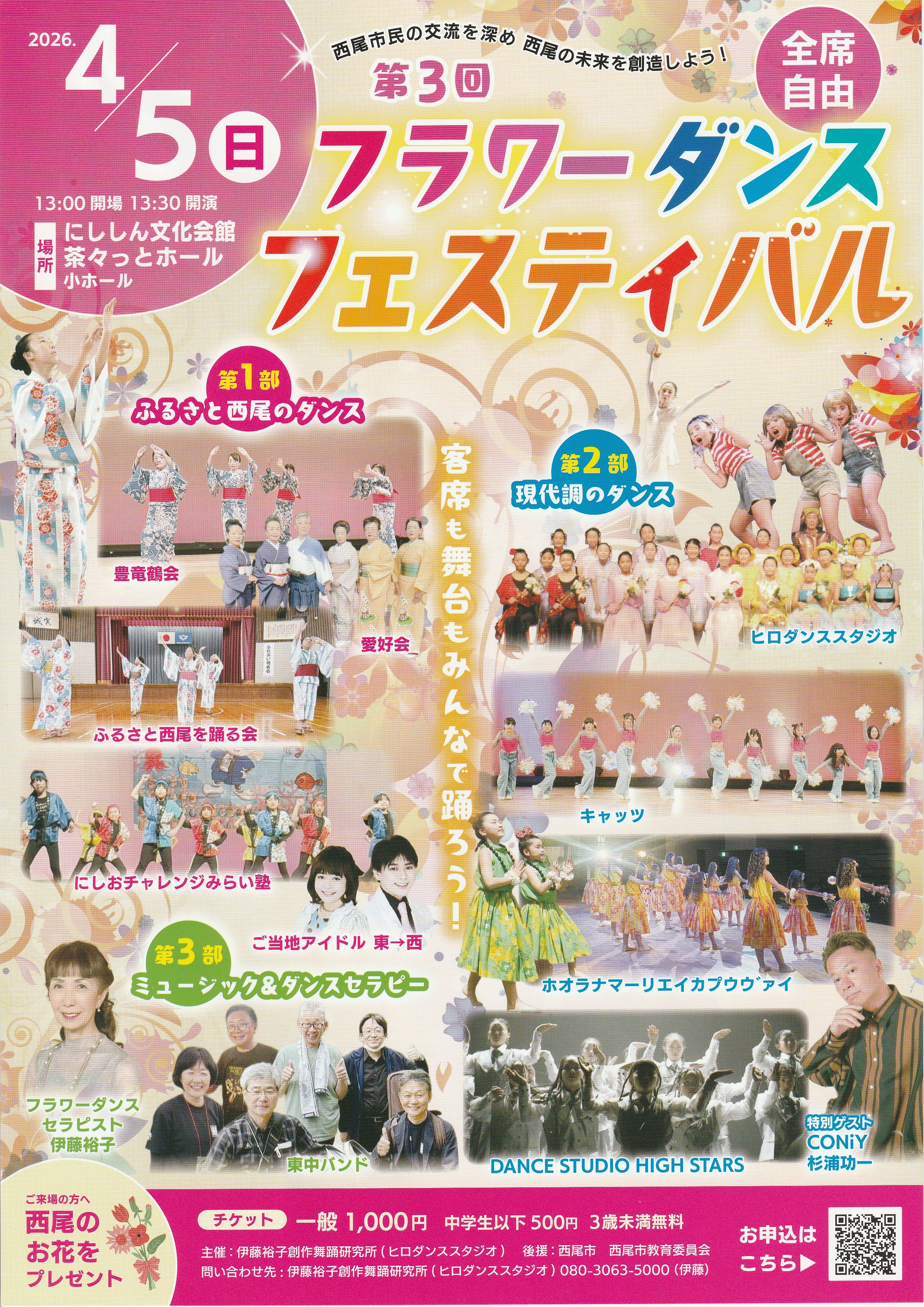 第1部 ふるさと西尾のダンス ①豊竜鶴会 ②愛好会 ③ふるさと西尾を踊る会 ④チャレンジみらい塾 ⑤ご当地アイドル東→西